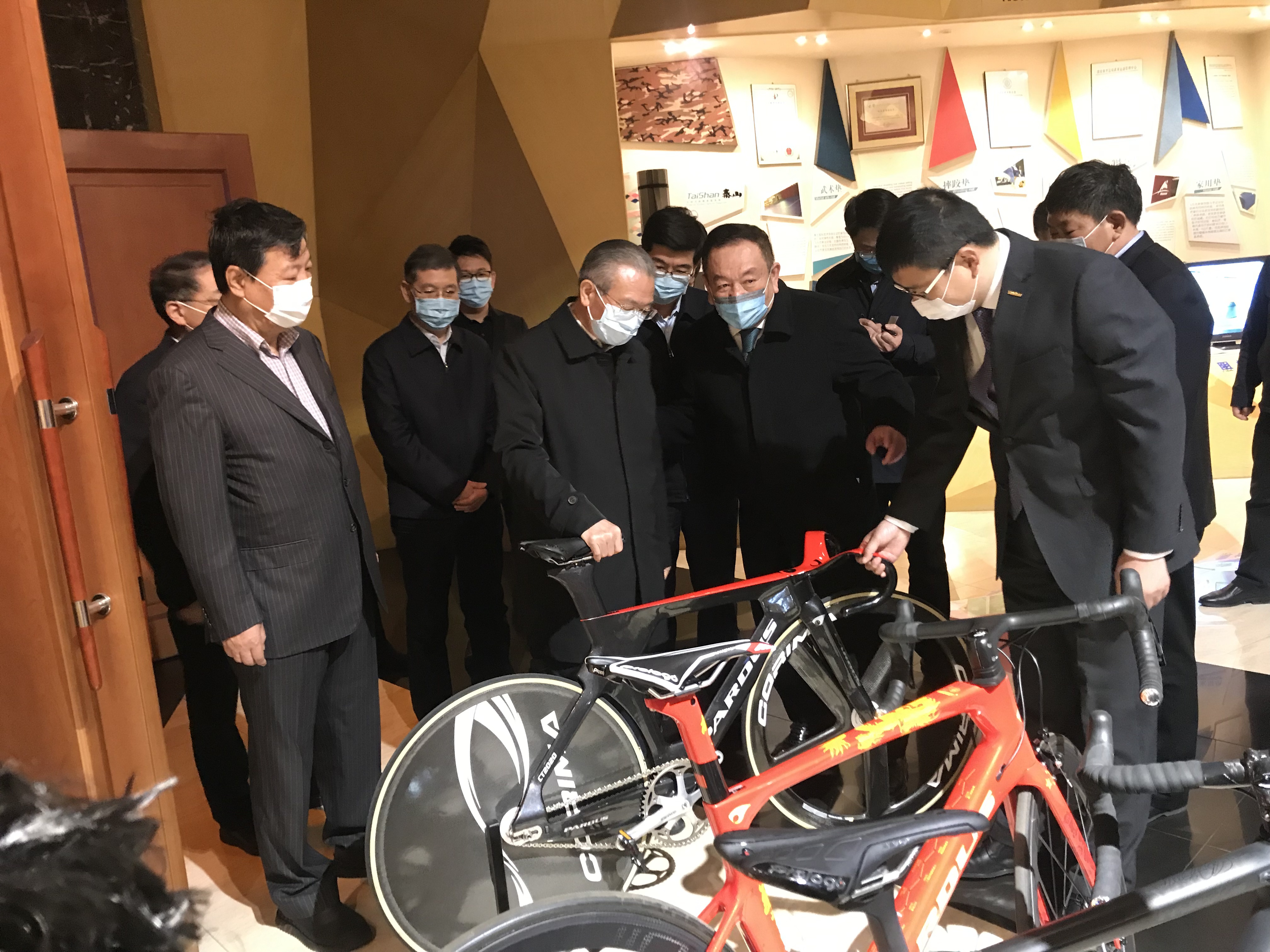 在调研体育产业集团时,山东省委书记刘家义深入体育器材生产车间、冰雪运动馆、康复器材展示区,体验产品性能,了解企业科技研发、标准制定、产业规划等发展信息。勉励企业加大研发投入,利用企业自身国家体育用品技术研究中心的优势,增加产品科技含量,把体育产业与康养产业融合起来,做优做强民族体育品牌。