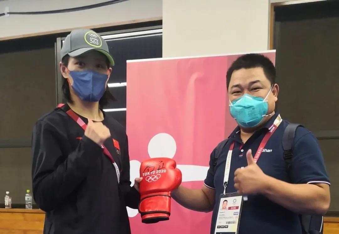 东京奥运会女子拳击69公斤级银牌获得者——中国运动员谷红签名体育拳击手套