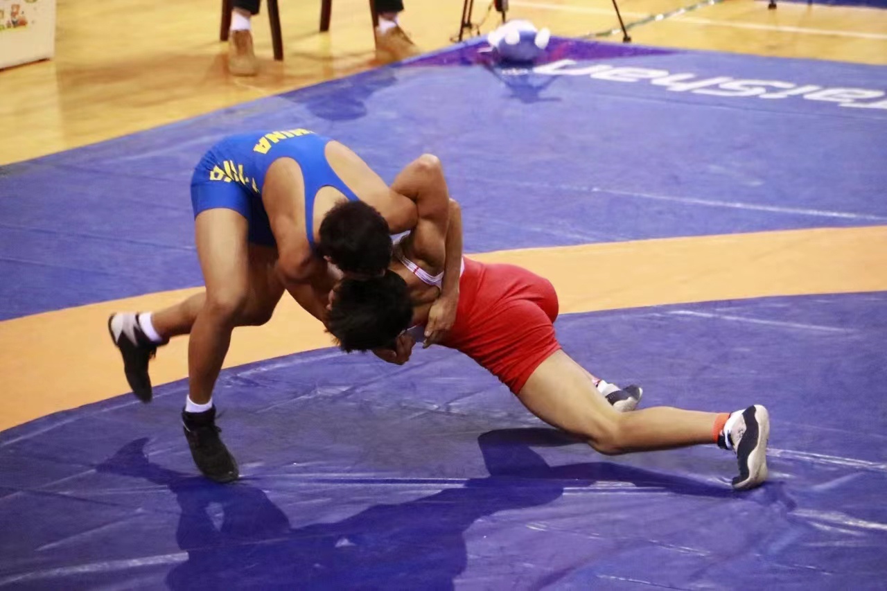 比赛现场,各代表队的摔跤健儿们激烈角逐、灵活移动,在摔跤器材上展示出一系列高难度、大幅度技术动作,充分展现出了摔跤运动的独特魅力。